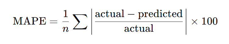 So far, we have measured error in absolute units such as days, marks, or rupees using MAE and RMSE. However, sometimes we want to express error in a way that is independent of scale and easy to communicate. For this purpose, we use Mean Absolute Percentage Error (MAPE).