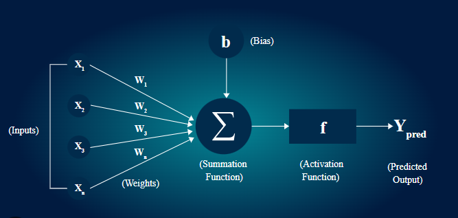 For example, if “hours studied” is more important than “hours slept,” it will have a higher weight. - Summation (Mixing the Inputs)