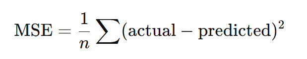 Mean Squared Error (MSE) calculates the average of squared differences between actual and predicted values.